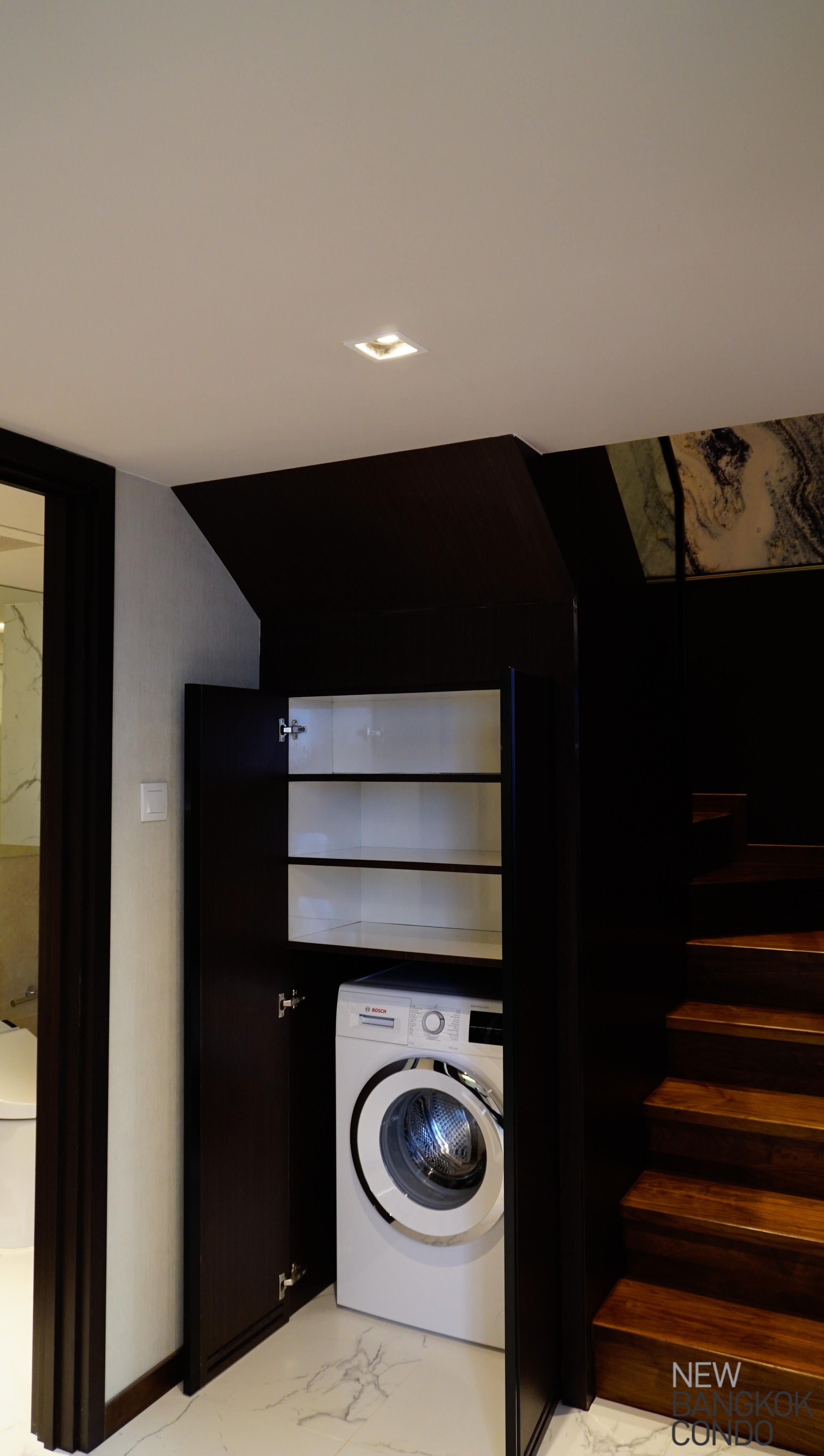 ห้องน้ำของห้องนี้จะอยู่ที่ชั้น 1 โดย Spec ในภาพรวมจะเหมือนกับทุกห้องน้ำก่อนหน้านี้ครับ ซึ่งบริเวณทางเข้าห้องน้ำจะเป็นตู้เก็บของใต้บันไดที่เราสามารถตั้งเครื่องซักผ้าและเก็บของได้ครับ