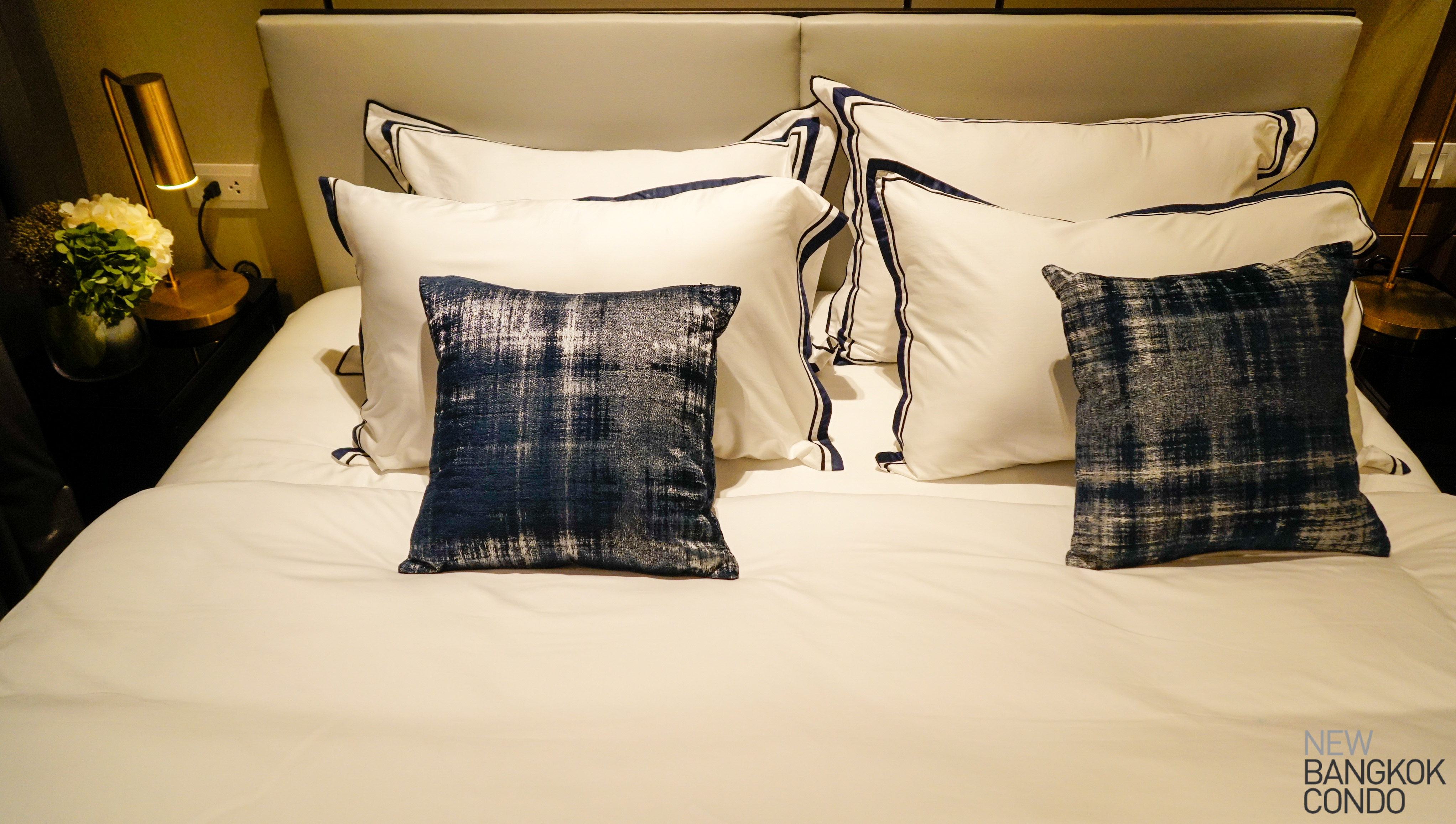 เปิดประตูห้องนั่งเล่นมาที่ห้องนอน ห้องนี้มีดีมากมาย เริ่มต้นด้วยกระจกหน้าต่างแบบชนขอบฝ้า การแบ่งช่องกระจกบานสไลด์ทำออกมาได้ดีมาก เพราะค่อนข้างใหญ่ดูสมส่วนครับ สำหรับ Highlight ของห้องนี้ที่เต้ชื่นชมมากนั่นคือตู้เสื้อผ้า เพราะหน้าตาของตู้เสื้อผ้าภายในห้องนี้ทำออกมาได้ดีมาก วัสดุหน้าตาดี โดยหน้าบานจะเป็นกระจกเทาดำตัดด้วยเฟรมสีเงิน Featuring ด้วยชั้นวางของบริเวณตู้เสื้อผ้า ในภาพรวมถือว่าค่อนข้างครบซื้อแค่เตียงมาตั้งก็จบเลย และท้ายสุด Drop ฝ้าบริเวณรางม่านก็ได้นะค๊าบ