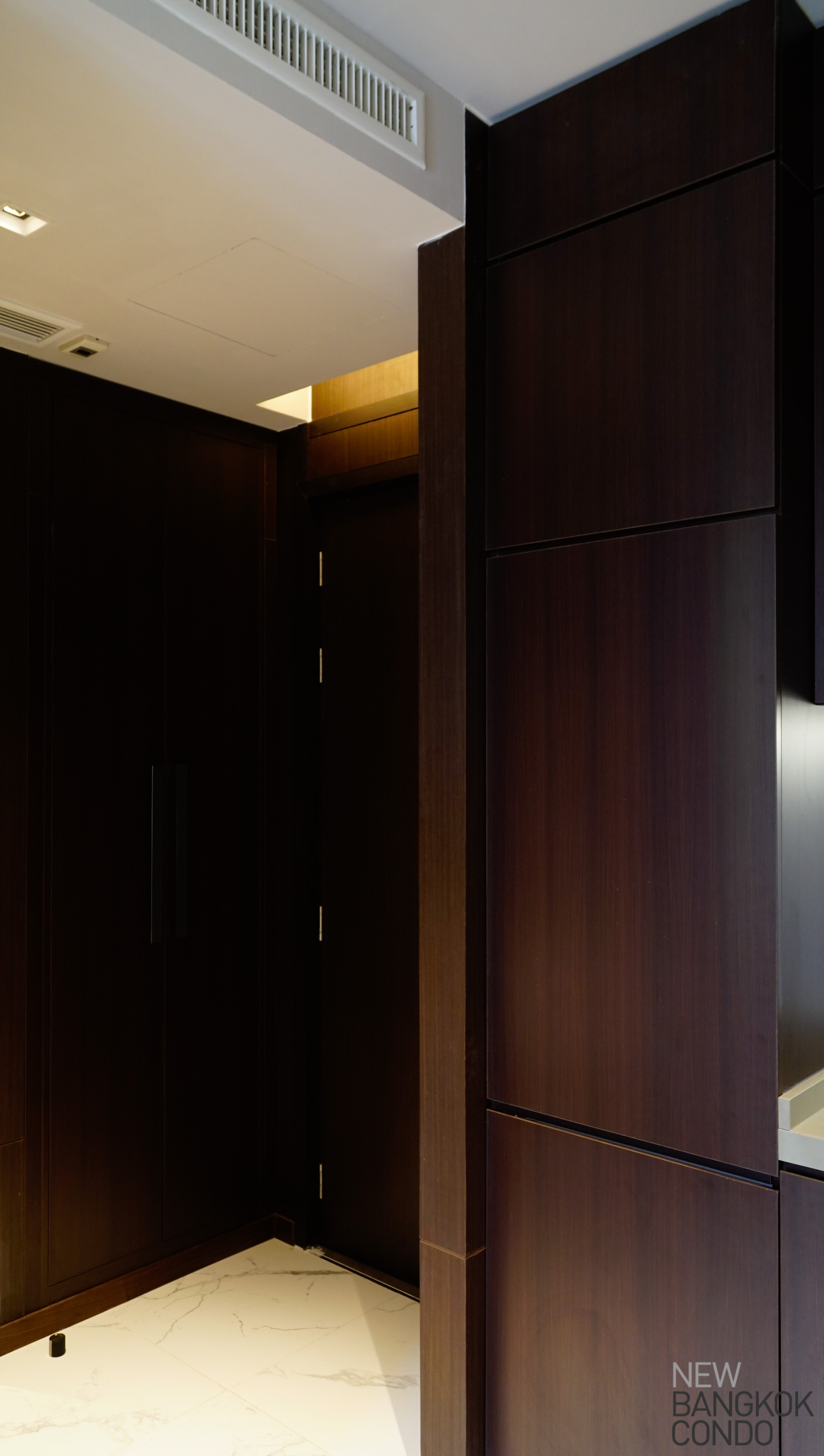 เปิดประตูมาก็จะพบกับตู้เก็บของและตู้เก็บรองเท้าขนาดใหญ่พร้อมไฟ LED ภายในตู้ ถัดเข้ามาจะพบกับครัวเปิดขนาดใหญ่ซึ่งจะเป็นแบบ L-Shape โดย Brand ทุกอย่างจะได้เหมือนกับทุกห้องนอนก่อนหน้านี้ แต่ก็มีสิ่งที่แตกต่างนะครับ เช่น ขนาดครัวที่ใหญ่กว่า นอกจากนี้สิ่งที่ได้เพิ่มเข้ามาก็คือ เตาไฟฟ้าที่มี 4 หัว อย่างไรก็ตามในห้องนี้มีติเล็กน้อย 1. สำหรับไซด์ 2 ห้องนอน ไมโครเวฟน่าจะเป็นเตาอบ+ไมโครเวฟที่ไซด์ใหญ่กว่านี้เพราะมันเหมือน 1 ห้องนอนเกินไป 2. อ่างล้างจานน่าจะเป็นแบบ 2 หลุม 3. ถ้าอิงจากคอนโด 2 ห้องนอนใน Segment นี้ ตู้เย็นควรจะเป็น Side by side ( 2 ประตูครับ) อย่างไรก็ตามในภาพรวมถือว่ายังดูดีแต่เนื่องจาก Spec เหมือน 1 ห้องนอนมากเกินไป จึงทำให้ไม่โดนตัดคะแนนเล็กน้อย